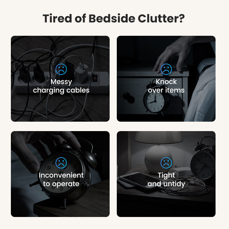 6-IN-1 MULTIFUNCTIONEEL - Combineert een draadloze lader, draadloze speaker, klok, wekker, thermometer en nachtlampje. Dit bespaart ruimte op uw nachtkastje en vereenvoudigt uw dagelijkse routine door essentiële gadgets te bundelen in één strak apparaat.
