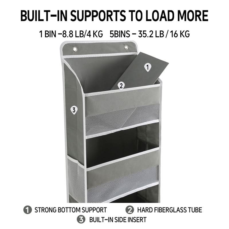 GROTE OPBERG CAPACITEIT - Met 5 ruime lagen biedt deze hangende organizer voldoende ruimte voor kleding, accessoires, speelgoed en huishoudelijke artikelen, zodat je ruimte vrij blijft van rommel. Ideaal voor het maximaliseren van verticale opslag in krappe ruimtes zoals slaapzalen, kasten of badkamers.